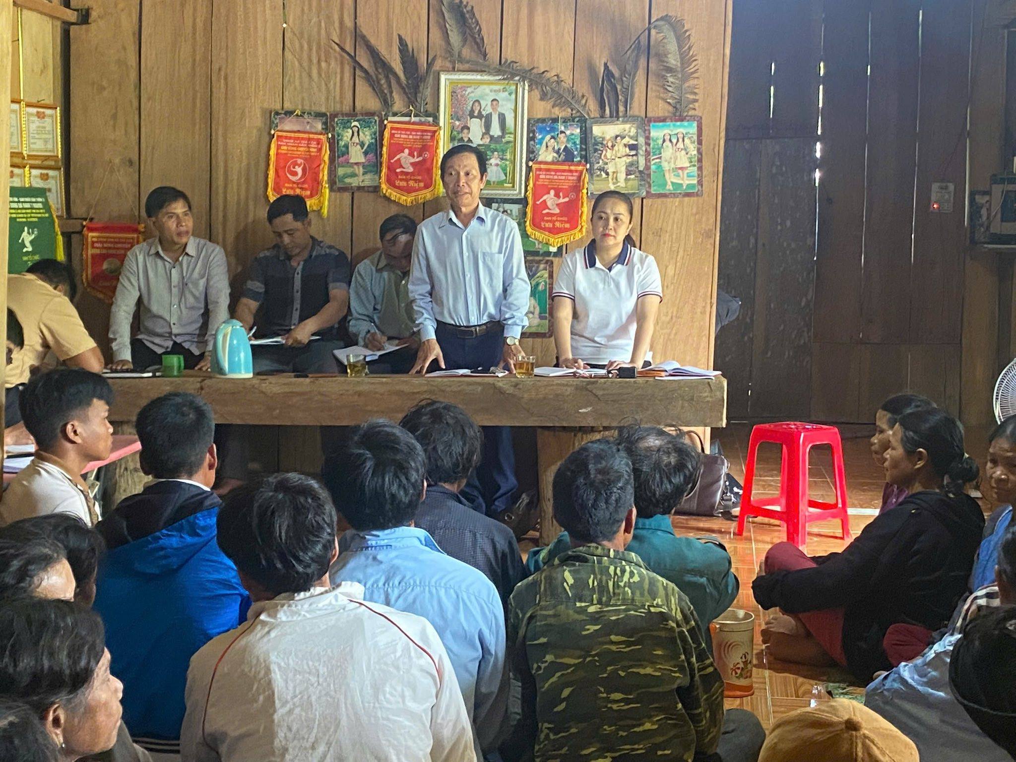 Cấp ủy, chính quyền xã Trà Vân làm việc với nhân dân thôn 3.